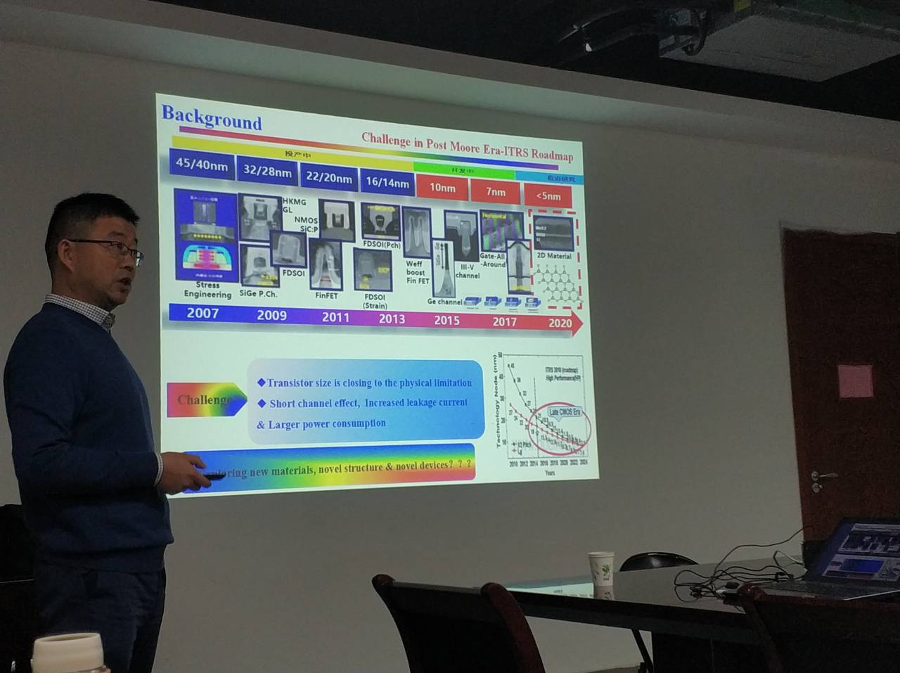 2019年11月26日,秋末了,天渐渐地转凉了,叶还在随风起舞,不肯落入尘埃,萧瑟的风宣告着冬的入侵, 时间过境,冬日正向美丽的必赢线路检测3003no1翡翠湖校区走来。必赢线路检测3003no1有幸请到安徽大学物理与材料科学学院教授——何刚,为我院师生做题为后摩尔时代新型超薄高k栅的设计、界面调控及器件集成的学术报告。