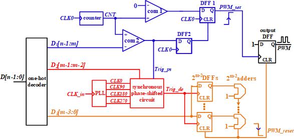 图1 基于同步相移电路和延时链的高分辨率数字脉宽调制器结构