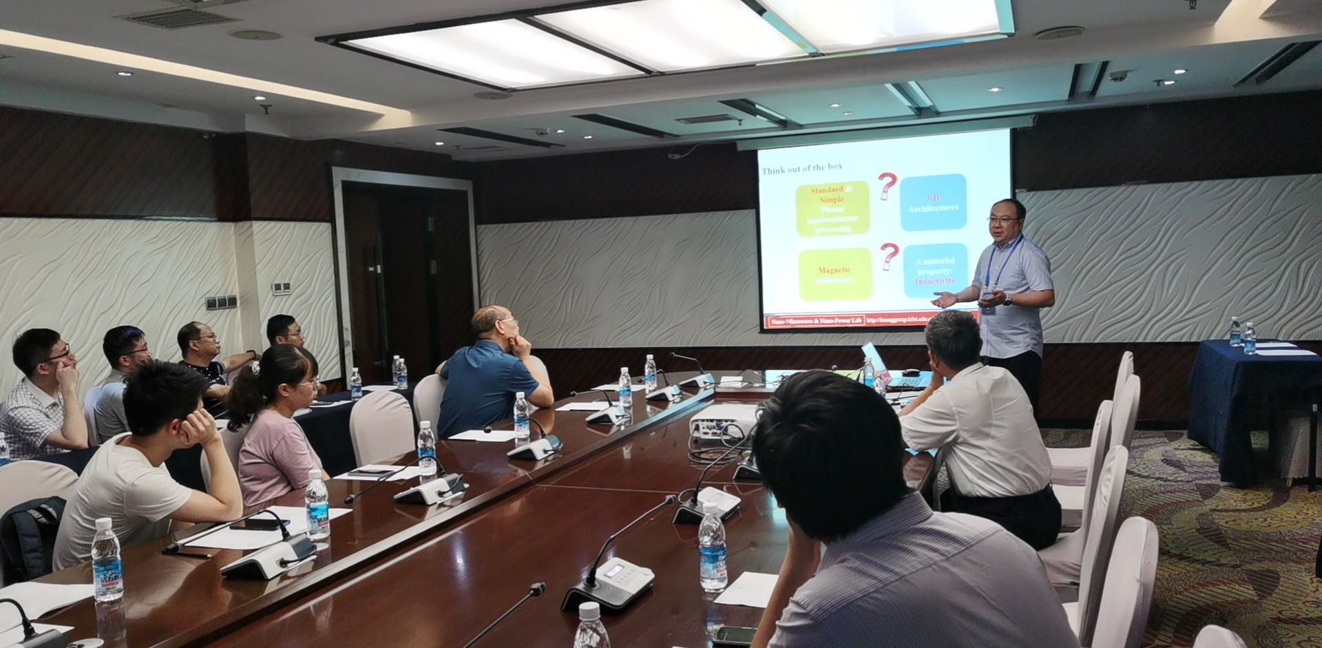 我院黄文教授和桑磊副教授应邀做特邀报告,黄文教授同时担任微波毫米波器件专题分会场主席。黄文教授的报告题为“片上自卷曲高性能微波无源器件”,为片上微波集总参数元器件的小型化提出了新的思路;桑磊副教授的报告题为“基于相变材料的可重构微波器件与天线”,为微波器件实现功能重构提出了新的设计方法和实现手段,并给出了在微波电路与系统中的应用范例。以上两项研究成果引起了与会代表的广泛关注和热烈讨论,得到了业内知名专家的赞扬和认可。