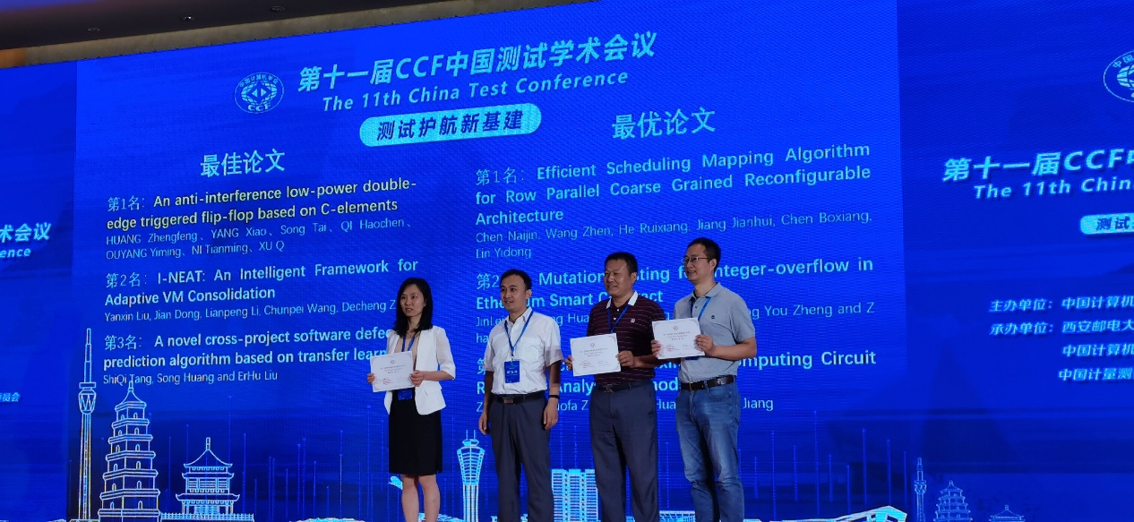 黄正峰教授获得CCF第11届中国测试学术会议最佳论文奖(第1名)