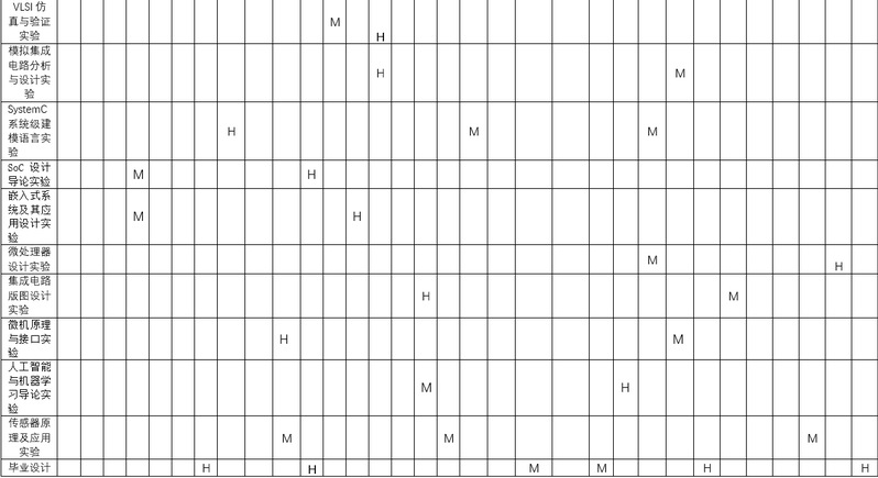 特色课程:VLSI仿真与验证,集成电路版图设计、集成电路版图设计、SoC设计导论、嵌入式系统及其应用设计、微系统集成与技术、SystemC系统级建模语言(双语教学)、人工智能与机器学习导论。
