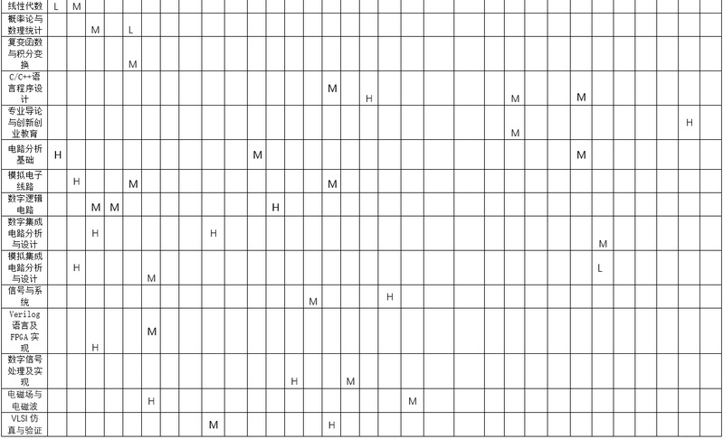 主干课程:电路分析基础、模拟电子线路、数字逻辑电路、模拟集成电路分析与设计、数字集成电路分析与设计、信号与系统、Verilog语言及FPGA实现、微电子器件与工艺基础、模拟电子电路课程设计、数字电子电路课程设计、集成电路与系统综合实践、数字IC设计、模拟混合信号IC设计与仿真、嵌入式系统设计、FPGA应用设计与测试。