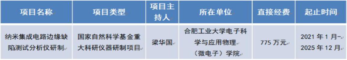 国家自然科学基金委员会公布了2020重大科研仪器研制项目评审结果,我院集成电路系梁华国教授团队申请的“纳米集成电路边缘缺陷测试分析仪研制”获得重大科研仪器研制项目资助,是我院获批的首项国家自然科学基金重大科研仪器研制项目。