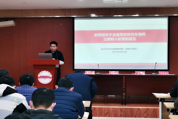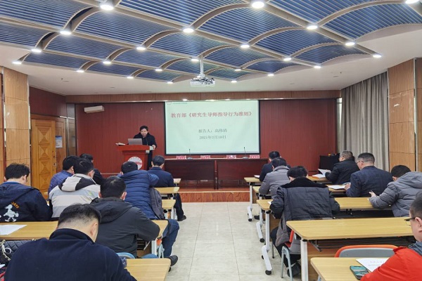 会上,学院副院长高伟清从坚持正确思想引领、科学公正参与招生、精心尽力投入指导、正确履行指导职责、严格遵守学术规范、把关学位论文质量、严格经费使用管理和构建和谐师生关系等八个方面领学了教育部印发的《研究生导师指导行为准则》。围绕2021年学院研究生培养体系完善、课程体系改革、导师队伍建设、研究生论文指导工作、常态化疫情防控研究生校外实习实训及科研活动等方面对2021年研究生培养工作进行了布置。