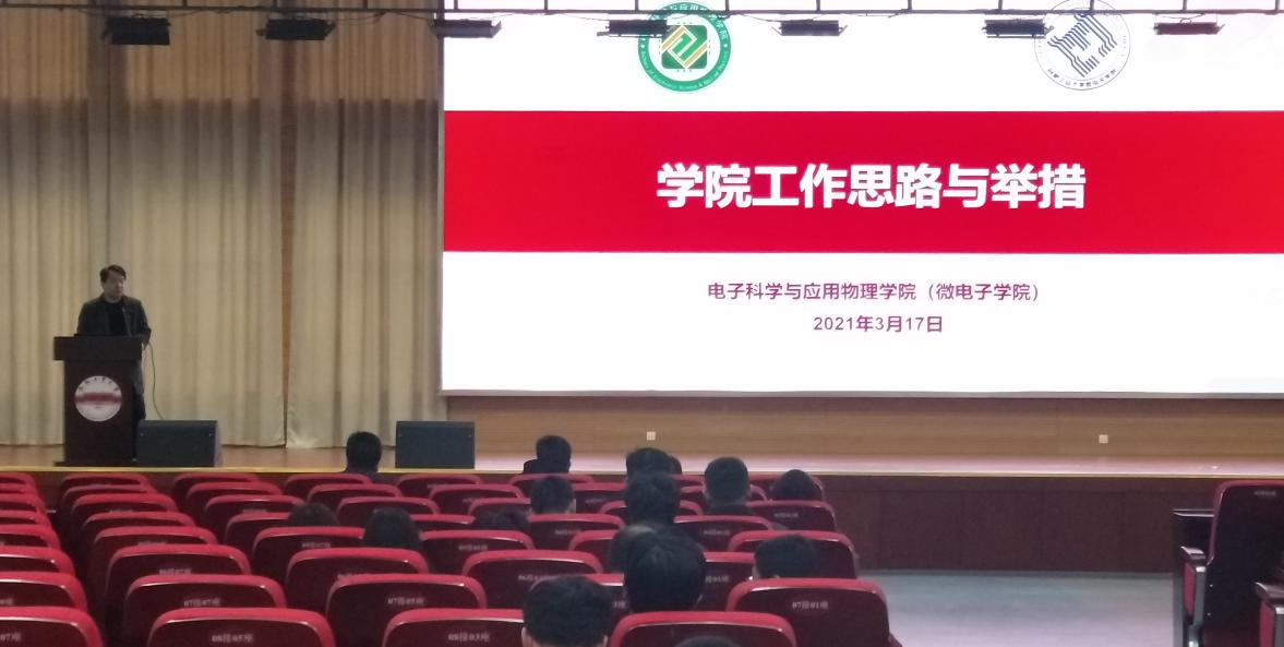 为贯彻落实好学校2021年寒假工作研讨会会议精神,推动学院“十四五”各项工作开好局、起好步,以优异的成绩迎接建党100周年。3月17日下午,学院在翡翠湖校区科技楼A座二楼报告厅召开全体教职工大会,会议由学院党委书记赵金华主持。