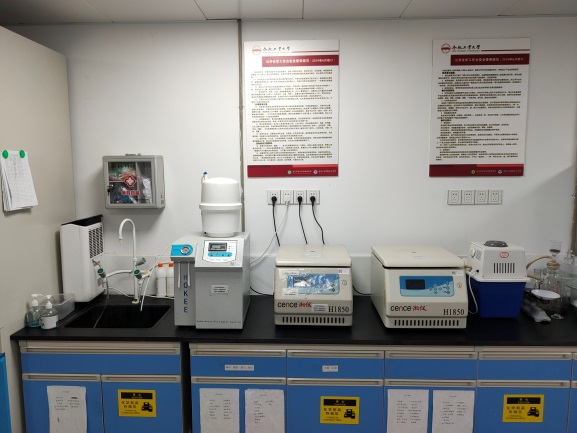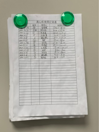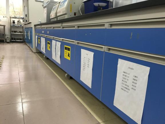 四、实验室仪器设备(如图4):实验室仪器设备按大小和功能有序摆放在实验台或实验室内预先设定位置,并用黄黑警戒线进行功能区分,在墙上悬挂实验操作规程,并在台面上悬挂仪器设备使用记录,并且记录详实完整。