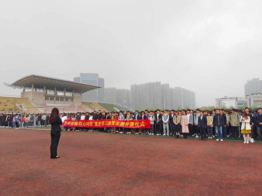 当日上午7点15分,“百年征程、红心向党”党史学习教育主题升国旗仪式开始,英姿飒爽的国旗护卫队迈着铿锵的步伐走向升旗台,伴随着《义勇军进行曲》激昂的旋律,两个学院2700余名学子面向国旗庄严肃立,行注目礼,在全体同学的国歌声中,鲜艳的五星红旗冉冉升起。同学们用雄壮的国歌声抒发着爱党爱国爱校情怀,表达着青年大学生将通过党史学习教育,感悟党的初心使命、体认党的精神谱系、传承党的红色基因,矢志为全面建设社会主义现代化国家、实现中华民族伟大复兴的中国梦贡献青春力量。