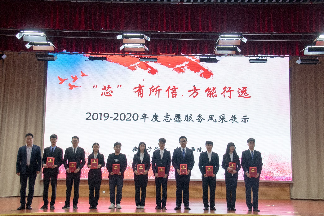 党委必赢国际部部长钟小要、党委必赢国际部副部长崔健、学院党委副书记兼纪委书记李丽鹏分别为十佳志愿者、志愿服务先进班级、“芯系祖国”寒假社会实践活动优秀标兵颁发荣誉证书。受到表彰的十佳志愿者中,有的扎根农村助力脱贫攻坚和新农村文化建设,有的奋战在疫情防控和抗洪抢险第一线,有的每周坚持前往省立医院、省图书馆、火车站服务大众,有的坚持四年担任工程认知博物馆志愿讲解员,有的组织、参与支教服务活动百余次……十佳志愿者的事迹感动了现场的每一名观众,热烈的掌声在会场此起彼伏。