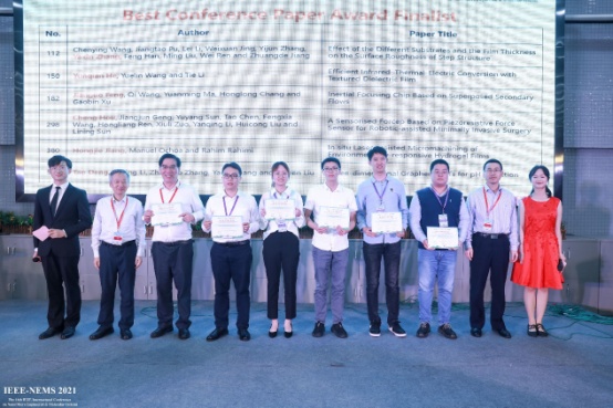 我院安徽省MEMS工程技术研究中心青年教师冯建国以“Inertial Focusing Chip Based On Superposed Secondary Flows”为题作大会报告,讲述了惯性微流控技术及其在微粒和细胞聚焦方面的应用。论文提出了一种基于增强型二次流的惯性聚焦微流控芯片,实现了对荧光微球和生物细胞的高效聚焦,该芯片有望应用于高灵敏度的细胞探测和分析以及即时诊断产品中。经过激烈的角逐,该成果最终获得了IEEE NEMS 2021最佳会议论文提名奖(6/530)。论文得到了国家重点研发计划项目、安徽省重点研发计划项目和安徽高校协同创新项目的支持。课题组硕士研究生杨朝晖和王琪参加本次学术会议。