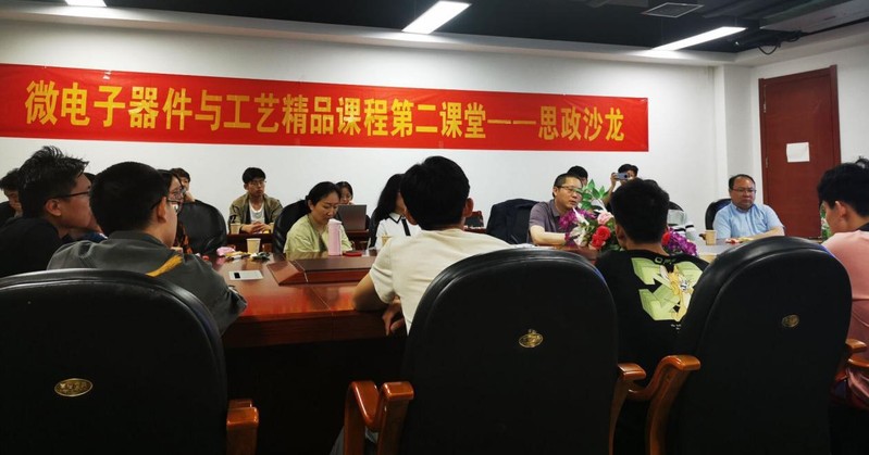 本次沙龙重点围绕《微电子器件与工艺基础》课程的专业发展、蕴涵的思政元素、与之相关的产业形势、就业状况,职业发展规划等诸多师生关心的话题进行研讨,通过自由和放松的方式与大学生进行互动和交流,对通过言传身教将育人目标有机融合在教学环节里,切实将课程思政的建设效果落到实处起到了积极的推动作用。