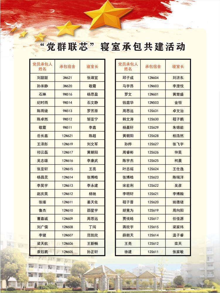 必赢线路检测3003“党群联芯”寝室承包共建以“宿舍承包”为主要形式,以德智体美劳五育并举领航发展为主要计划,通过“一对一责任承包”形式,一名高年级党员承包一个低年级学生寝室,建立“联芯关系”,做到为群众办实事、为校园做服务、为党员强信念、为党旗添光彩。