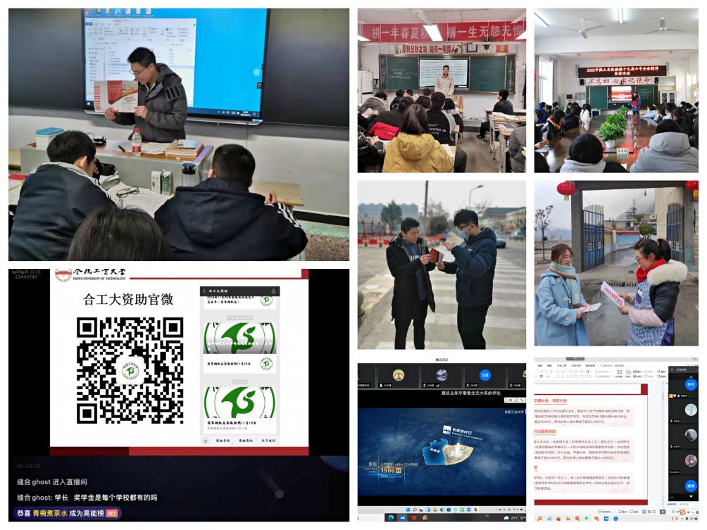 假期,资助宣传大使通过多途径开展多内容宣讲,如开展返乡返校宣讲活动,对国家奖助政策体系、学校资助关怀举措、学院资助育人情况进行宣讲;如开展学校学院专业介绍、校外资助情况宣讲;如通过线上会议或直播方式,对学校进行宣传推广,记录大学生活感悟、成长收获,分享受助经历、心得体会。