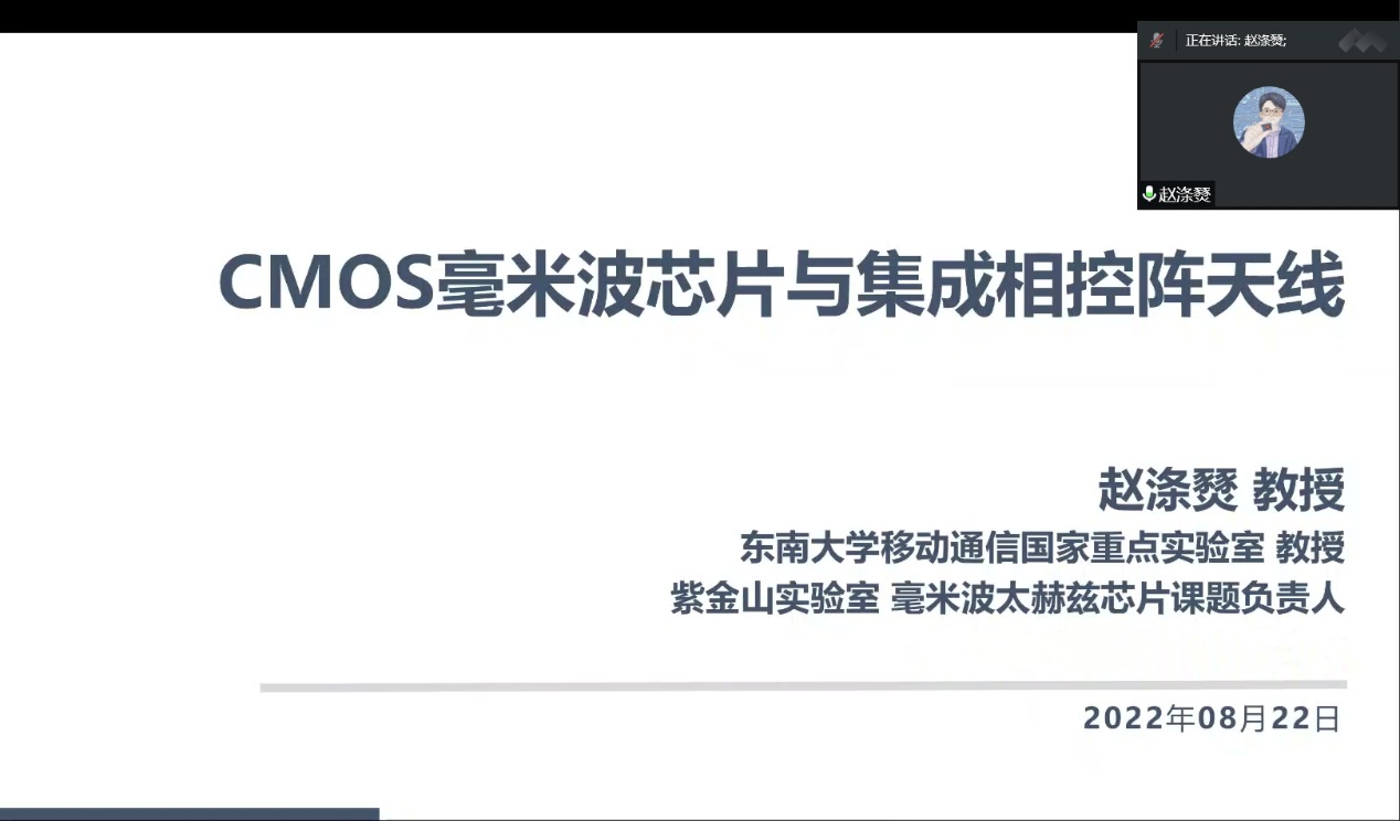 东南大学赵涤燹教授介绍了基于CMOS工艺的毫米波芯片设计和基于多层混压PCB工艺的大规模集成相控阵天线设计,探讨了大规模相控阵天线技术亟待突破、解决电波传播路径受限和波束快速切换等问题。