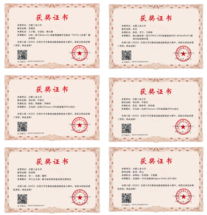 2022年8月21日至23日,第六届全国大学生集成电路创新创业大赛全国总决赛(以下简称“集创赛”)在重庆举行。我院李桢旻、邓红辉、肖昊、杜高明、张章等老师指导的6支队伍在全国总决赛中荣获三等奖4项,优秀奖2项,并蝉联优秀组织奖。在此前进行的集创赛华中赛区(包含安徽、湖北、湖南、江西、河南五省)的决赛中,我院参赛队伍共获得一等奖4项,二等奖5项,三等奖5项,多位教师获得“优秀指导教师”称号。