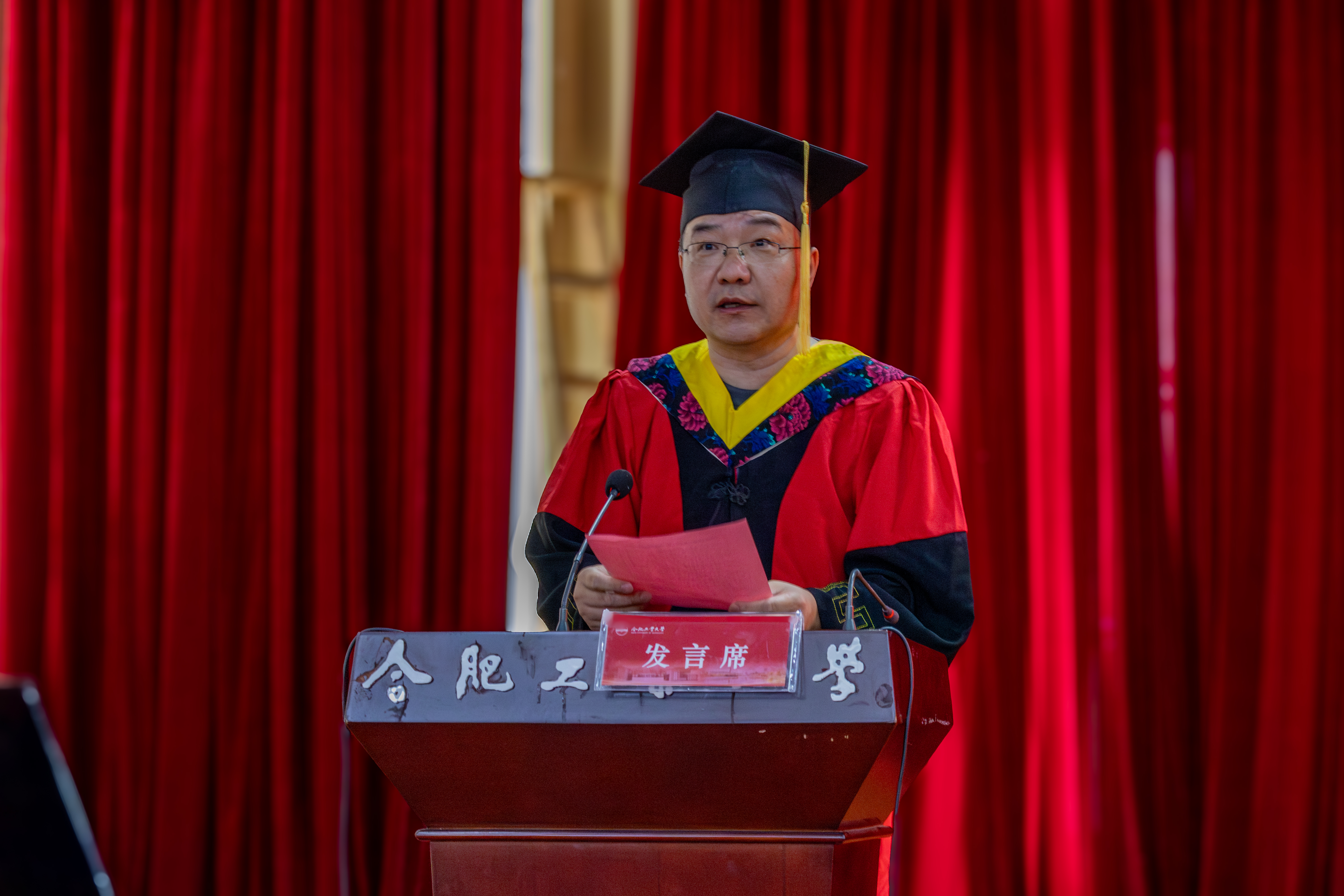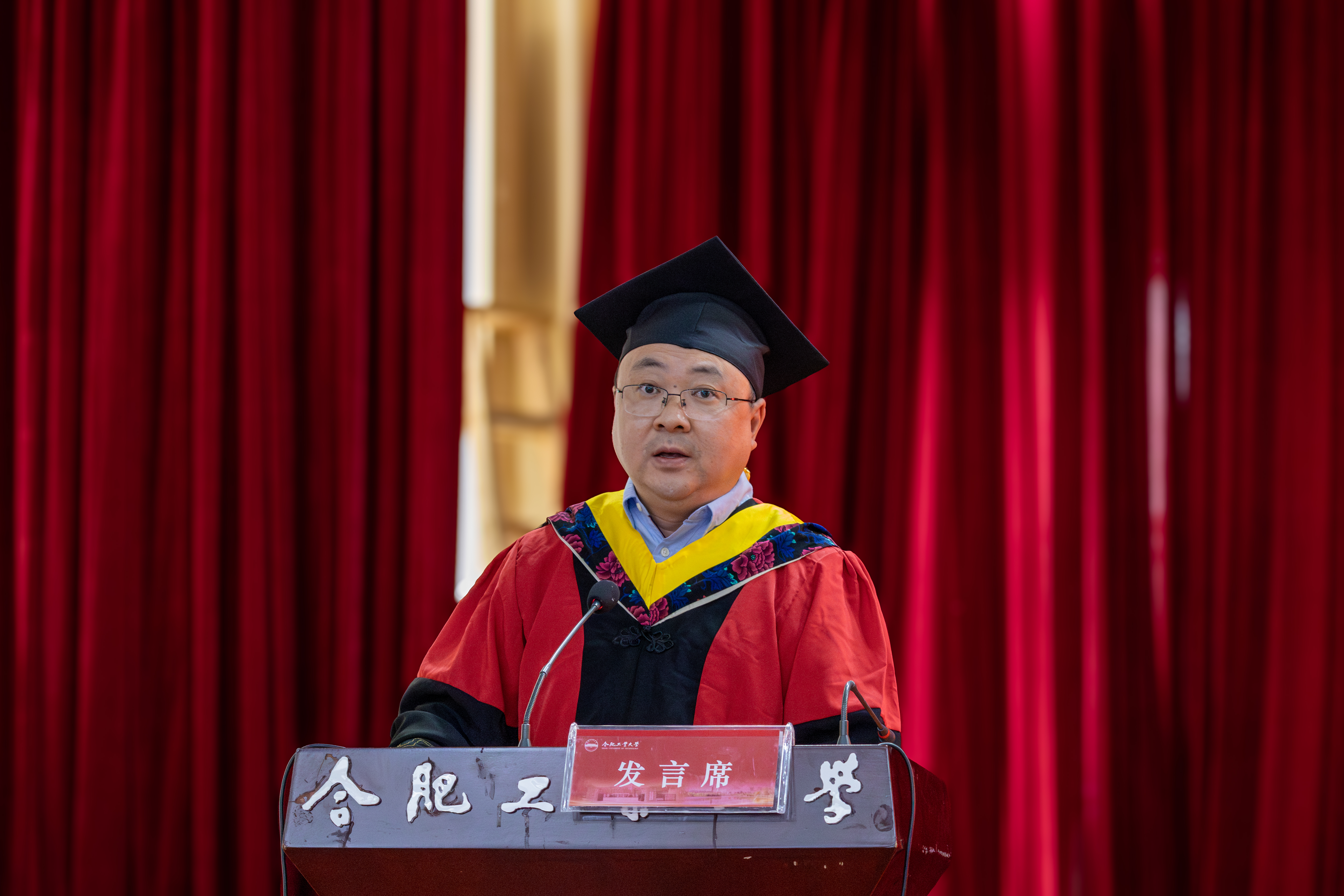 丁立健在讲话中代表学校向全体毕业生同学表示热烈的祝贺,并向毕业生提了三点希望:一是要以“时不我待”的崇高使命,脚踏实地、久久为功。把自己的小我融入祖国的大我、人民的大我之中,与时代同步伐、与人民共命运,闪亮微光、脚踏实地、砥砺前行,让青春在全面建设社会主义现代化国家的火热实践中绽放绚丽之花。二是要以“我将无我”的历史担当,坚定信仰、砥砺奋进。做走在时代前列的奋进者、开拓者、奉献者,努力成长为对党和人民忠诚可靠、堪当时代重任的栋梁之才。三是要以“不负人民”的家国情怀,求是创新、逐梦星光。做到心中有国家、心中有人民,厚植家国情怀,勇担时代重任,主动接过强国建设的“接力棒”,走好新时代的“长征路”,勇当改革发展的“弄潮儿”,在各行各业勤勉耕耘、静待收获,奋力在中华民族伟大复兴的征程中续写新的辉煌篇章。