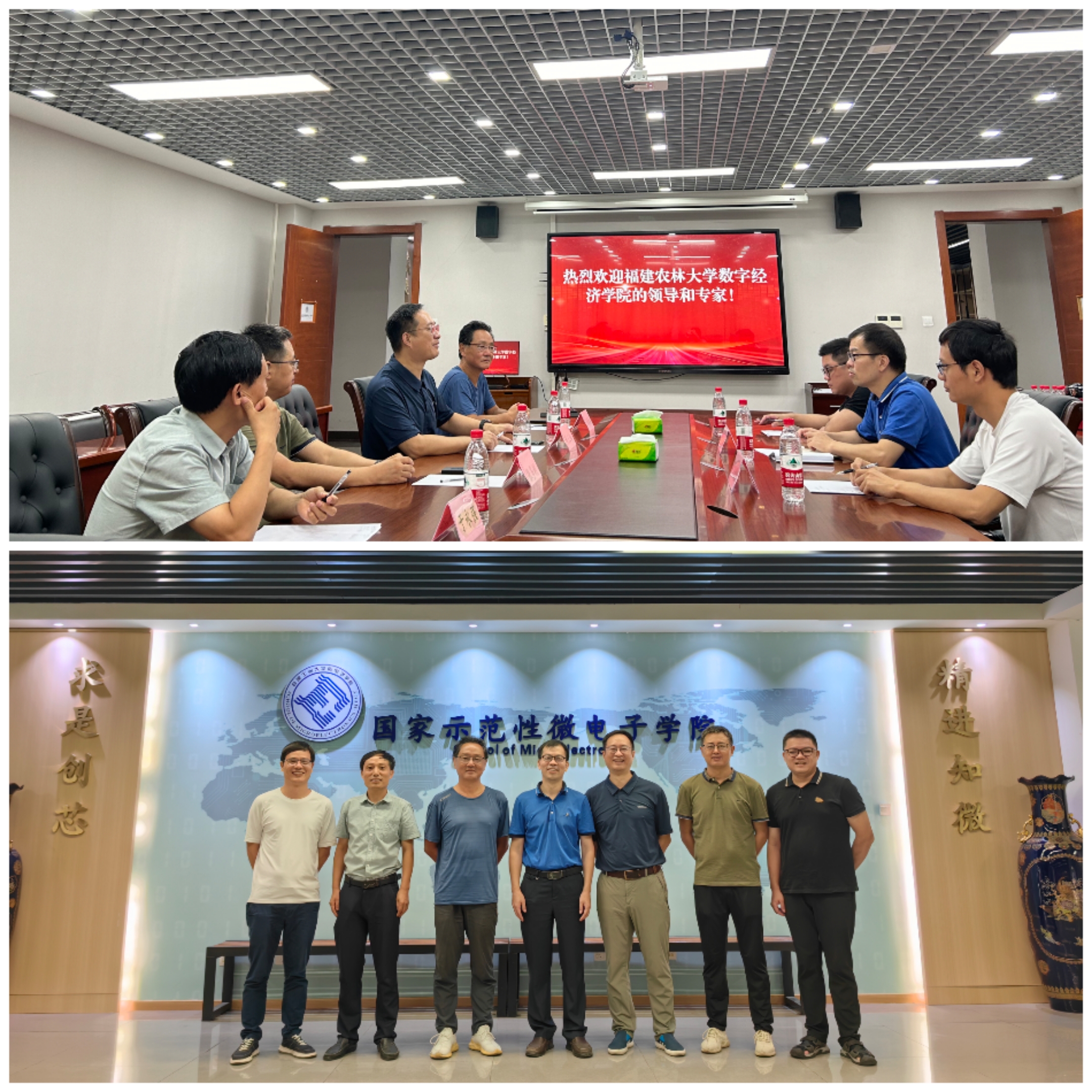 8月13日上午,福建农林大学数字经济学院吴义炳副院长、陈辉荣主任、冯新凯老师来我院交流座谈。会议在翡翠科教楼A座1712举行,参与交流的包括黄正峰副院长、安徽省专用系统芯片集成技术工程研究中心主任张多利教授、办公室主任刘继春、电科系副主任于永强。