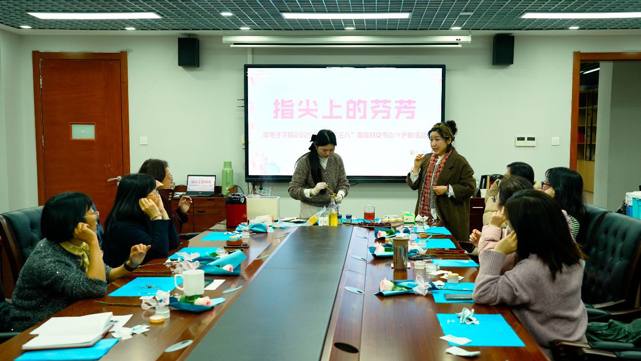 为纪念“三八”国际妇女节,丰富女教职工的业余生活,3月5日下午,必赢线路检测3003工会举办了以“指尖上的芬芳”为主题的女教师DIY护肤品活动。学院党委书记刘梅、党委副书记兼纪委书记张发宇、工会主席沈时兴和近二十余名女教师齐聚一堂,在专业老师的指导下,亲手制作天然护肤品,体验科技与美丽的完美融合。