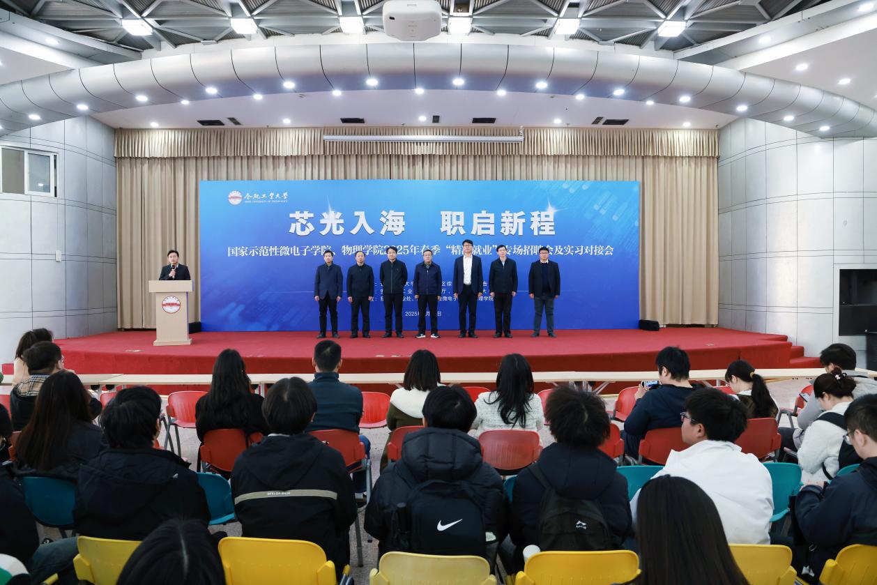 3月19日下午,由安徽省工业和信息化厅和我校联合主办,我院和物理学院承办的2025年春季“芯光入海·职启新程”精准就业专场招聘会及实习对接会在翡翠湖校区综合楼301报告厅顺利举行。安徽省工业和信息化厅二级巡视员查汉斌出席活动并宣布开幕。