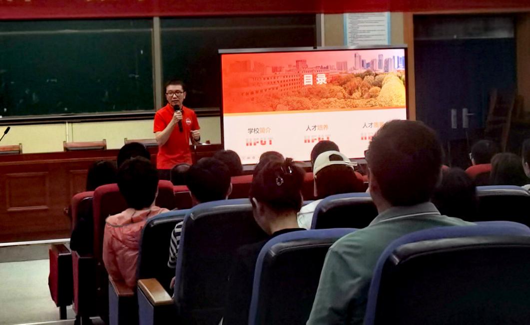 涂昊教授从学校简介、人才培养和人才质量三个维度深入介绍了学校的整体情况、育人理念和典型特色,同时结合学院学科特点,重点介绍了集成电路设计与集成系统创新实验班的基本情况、学生毕业就业择业基本情况和高考填报志愿的逻辑技巧,有针对性的给参加宣讲会的学生家长进行了辅导报告。在现场提问交流环节,张发宇老师和涂昊教授分别结合学生家长提出的问题,实事求是的给出了可行性建议意见,整个招生宣传活动现场气氛热烈、互动频繁。