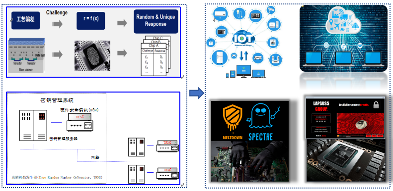 新时代物联网技术飞速发展,人工智能、区块链、云计算等各种新兴技术的应用进入了全新的高度。在终端设备数量指数级增长的背后,集成电路硬件层安全漏洞正成为黑客攻击的“隐形入口”。硬件安全原语(Hardware Security Primitives)作为嵌入在芯片或电子设备内部的基础安全模块,其利用物理特性(如半导体制造差异、电路噪声或量子效应等)来实现密码学功能、设备认证和防篡改功能等。与依赖软件算法的传统安全方案不同,硬件安全原语直接在硅片层面构建信任,具有不可克隆、不可重复等独特的安全优势。为了匹配当今物联网设备的高速和轻量级的安全需求,我院集成电路硬件安全鲁迎春、黄正峰团队对物理不可克隆函数(PUF)和真随机数发生器(TRNG)等硬件安全方向进行了深入研究。