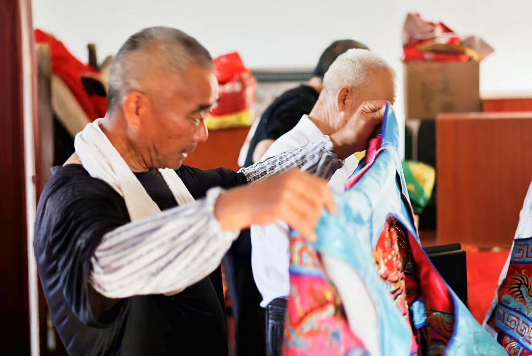 在表演体系方面,传承人介绍,表演队伍由18名“神角”组成,表演者身着刺绣服饰,分别扮演三国时期刘关张、杨家将等历史英雄人物。不仅通过纹样对应着历史人物的身份标识——比如武将服饰上的铠甲纹、文官服饰上的云纹,还暗藏着吉祥祈福的美好寓意苏良金介绍,队伍会依场合灵活调整出场人数与阵法,共108种——村民家有红白喜事时,“刘关张”小阵入户祈福;春节等重大节日则整队出场,阵法随场景动态变化。