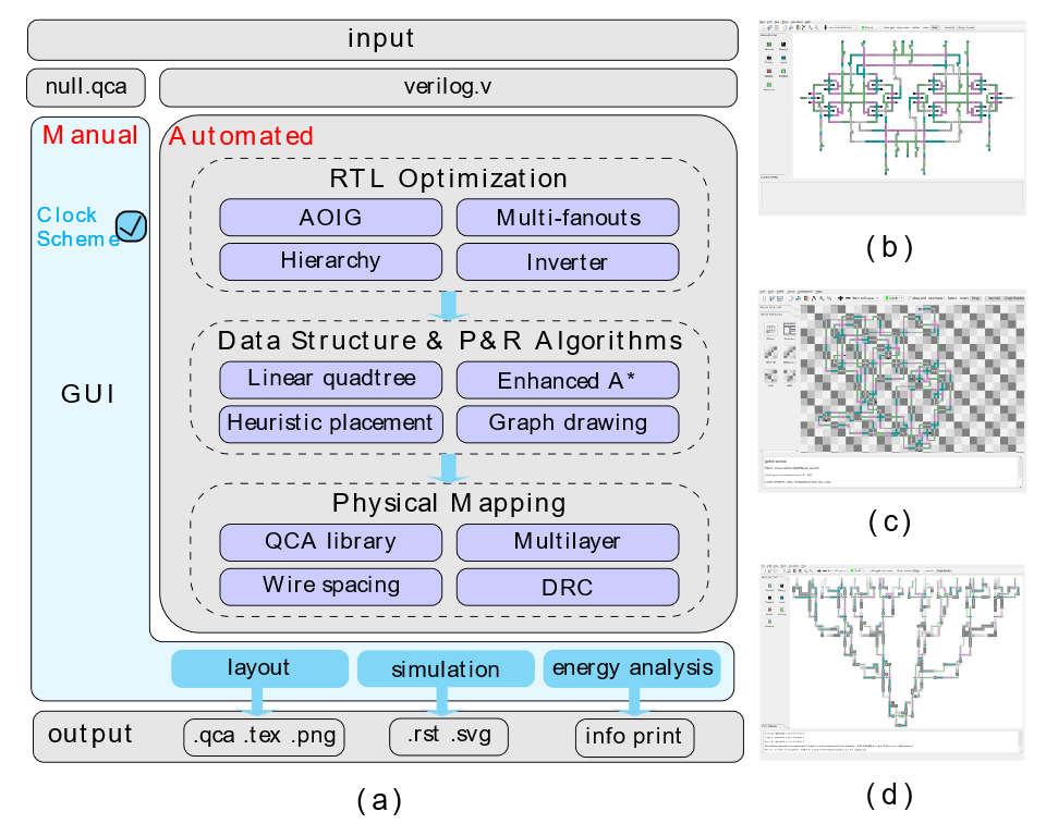 近日,我院集成电路设计研究中心解光军教授团队在分子场耦合纳米电路(Molecular Field-Coupled Nanocomputing, MolFCN)自动化设计领域取得新进展,研发并开源了面向MolFCN的全流程EDA平台iFCN。相关成果以An Automated RTL-to-Device Design Framework for Molecular Field-Coupled Nanocomputing Circuits为题,发表在国际电路与系统领域著名期刊IEEE Transactions on Circuits and Systems I: Regular Papers(https://ieeexplore.ieee.org/document/11130445),必赢线路检测3003no1为第一署名单位,第一作者为博士生李杨帅,通讯作者为解光军教授。