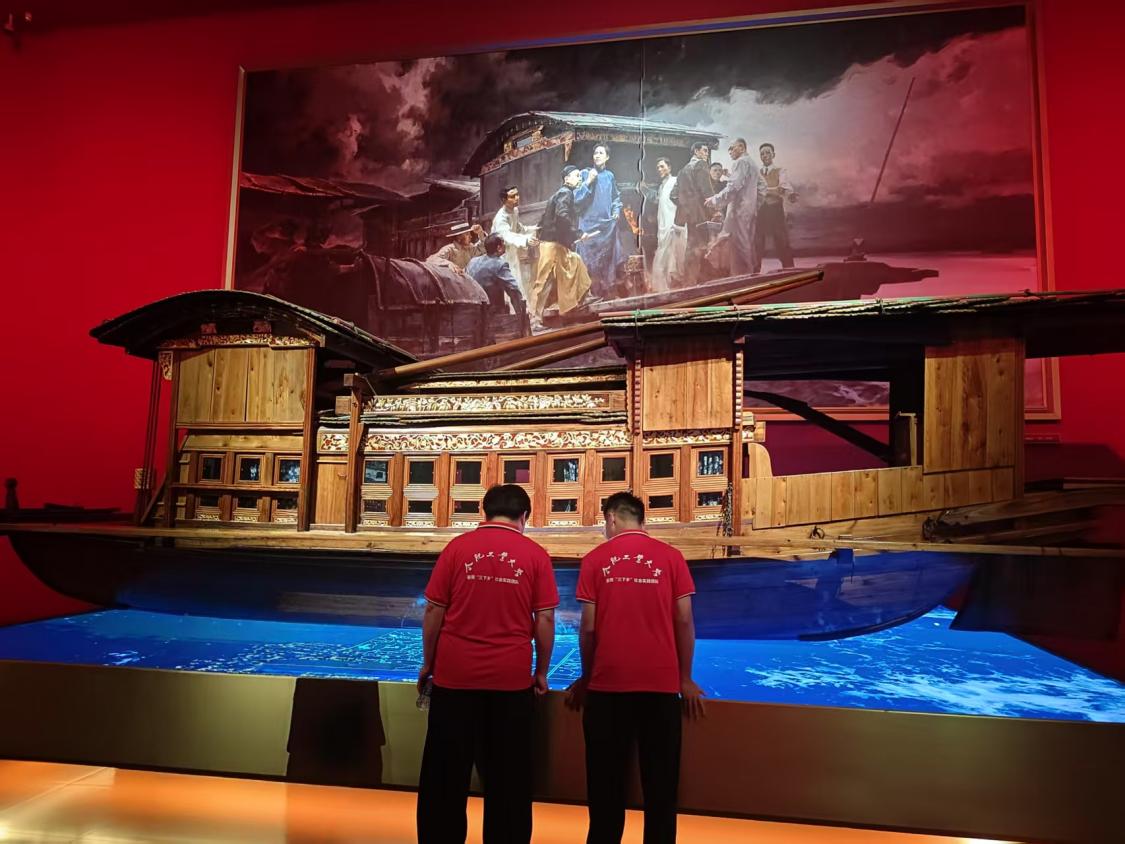 在中国共产党第一次全国代表大会复原场景前,团队成员神情庄重,仿佛穿越回 1921 年风雨如晦的年代,亲身感受那场开天辟地的伟大会议,深刻体悟中国共产党 “为中国人民谋幸福、为中华民族谋复兴” 的初心使命。驻足 “红船精神” 展示区,大家认真学习中国共产党在嘉兴南湖红船完成一大全部议程的历史,深刻理解 “红船承载初心、启航革命航程” 的深远意义。