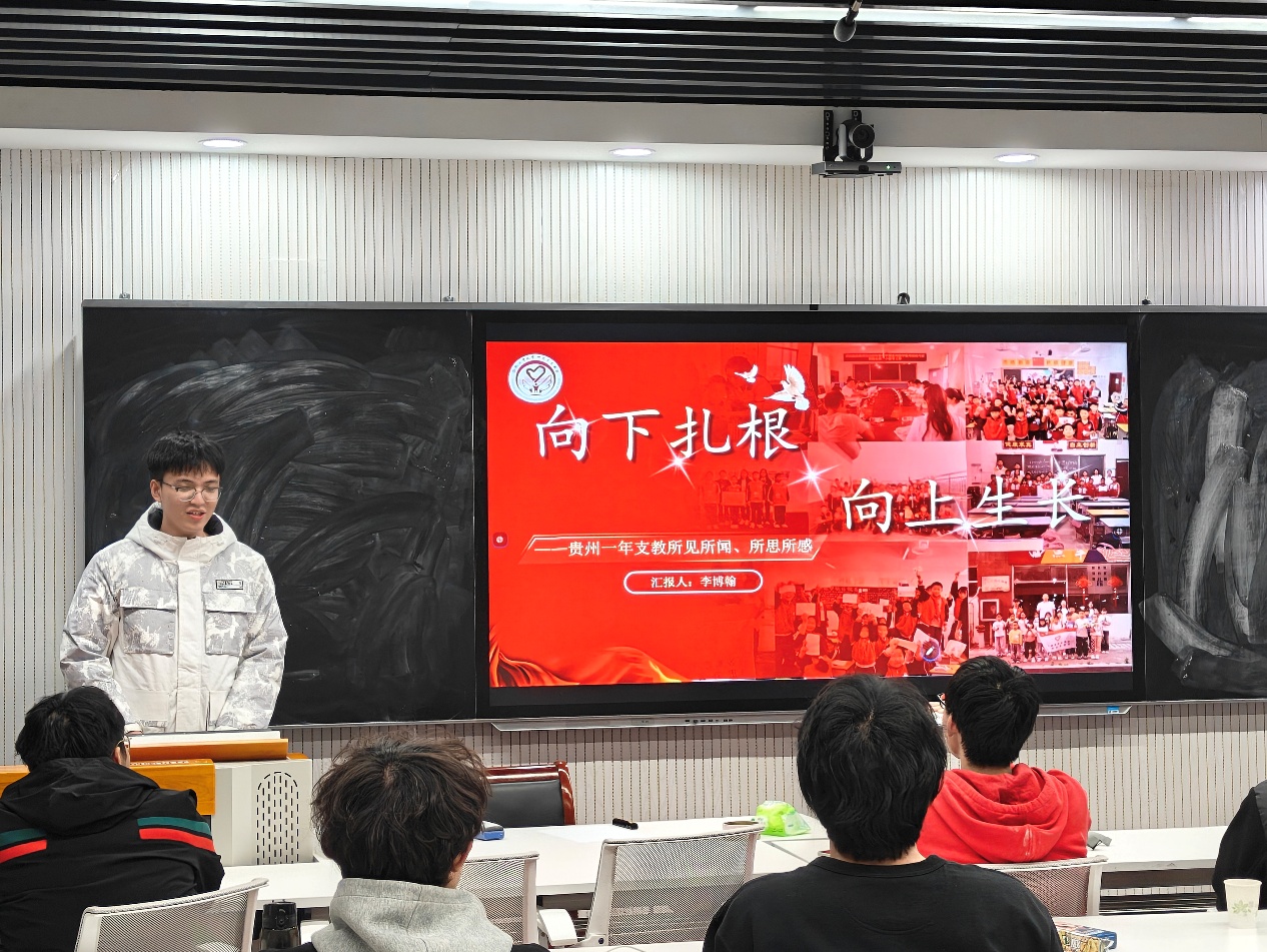 必赢线路检测3003no1第26届研究生支教团成员李博翰同学结合自身贵州支教经历,以“先富带动后富”“共同富裕”等时代命题为切入点展开深度阐释。通过贵州支教教师刘秀祥“千里背母上学”的感人事迹,生动诠释“教育扶贫阻断贫困代际传递”的现实意义;援引各地对口援建、山区营养餐计划等具体案例,系统梳理脱贫攻坚的制度优势和实践路径。在理论研习环节,他将《湖南农民运动考察报告》中的群众路线思想与基层宣传工作相结合,运用《矛盾论》的辩证思维剖析乡村振兴中的现实矛盾。在互动研讨环节,同学们围绕“青年如何在乡村振兴中发挥作用”展开热烈讨论。活动现场气氛庄重而热烈,经典理论的现实生命力与青年学子的家国情怀在碰撞中激荡出璀璨火花。